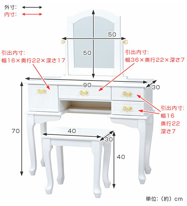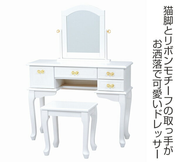 サイズ約 幅90×奥行30×高さ120(cm)内容量1台材質桐材、ポプラ材、MDF備考組立式商品区分ドレッサー・鏡台カテゴリから探すドレッサーセット スツール付 姫系 ロマンチック リボン型引手 フェミニン 幅90cm 金色のリボン型の取っ手がかわいいおしゃれなゴールドカラーのリボンモチーフがアクセントがプリンセス気分にさせてくれます。