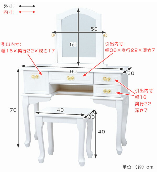 サイズ約 幅90×奥行30×高さ120(cm)内容量1台材質桐材、ポプラ材、MDF備考組立式商品区分ドレッサー・鏡台カテゴリから探すドレッサーセット スツール付 姫系 ロマンチック リボン型引手 フェミニン 幅90cm 金色のリボン型の取っ手がかわいいおしゃれなゴールドカラーのリボンモチーフがアクセントがプリンセス気分にさせてくれます。